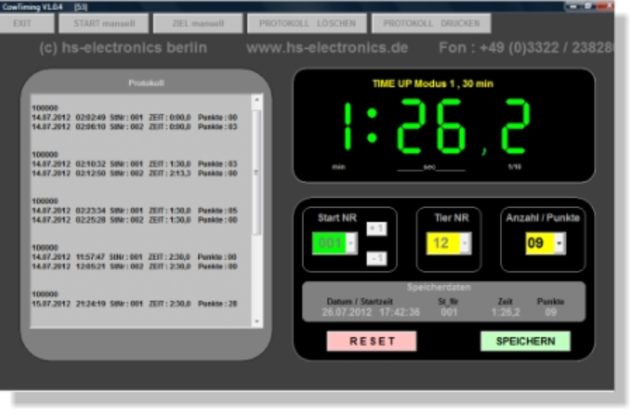Die Aussenanzeige zeigt dem Teilnehmer für 7 sec. die Tiernummer , danach die laufende Zeit an.