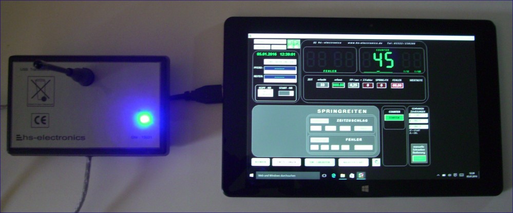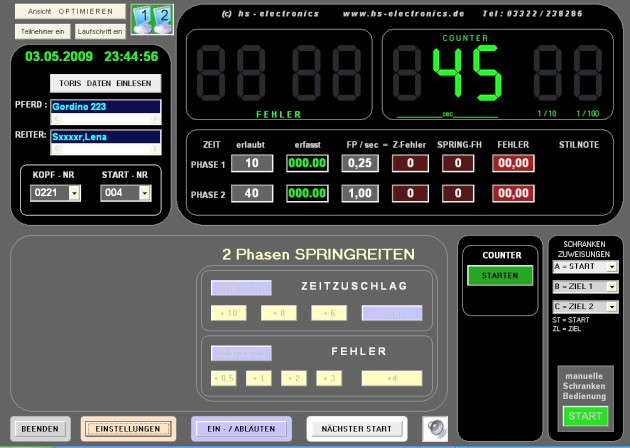 Zeitmessanlage für Springreiten, Reitsport, Fahrsport, Pferdesport. Zeitmessung mit Lichtschranken und Windows Software Springreiten / Reitsport